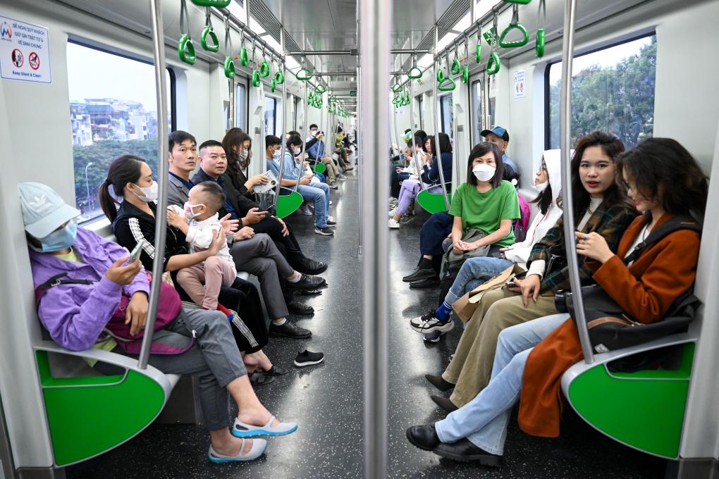 12月9日,人們?cè)谠侥虾觾?nèi)乘坐吉靈-河?xùn)|線輕軌。河內(nèi)吉靈-河?xùn)|線輕軌由中國(guó)中鐵六局集團(tuán)有限公司承建,是中越兩國(guó)共建“一帶一路”的標(biāo)志性項(xiàng)目。新華社記者程一恒攝