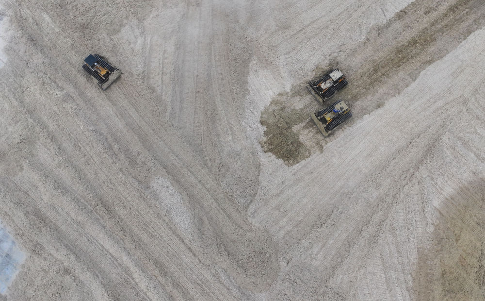 12月12日,在廣西湘桂華糖制糖集團來賓紙業(yè)有限責任公司,工作人員在整理蔗渣(無人機照片)。