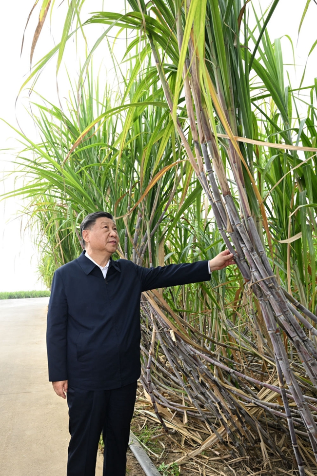 12月14日下午,習近平總書記在廣西來賓市考察調研。他先后來到來賓市國家現(xiàn)代農業(yè)產業(yè)園黃安優(yōu)質“雙高”糖料蔗基地和東糖鳳凰有限公司,了解甘蔗良種繁育、種植收成、糖產業(yè)發(fā)展等情況。