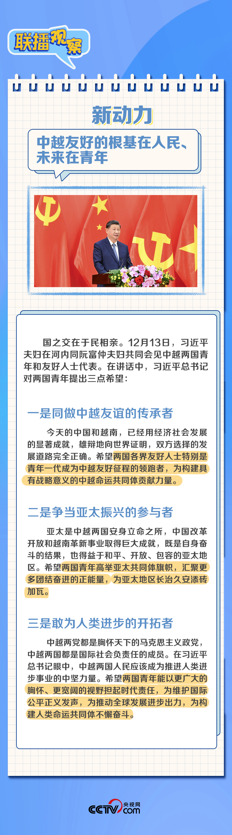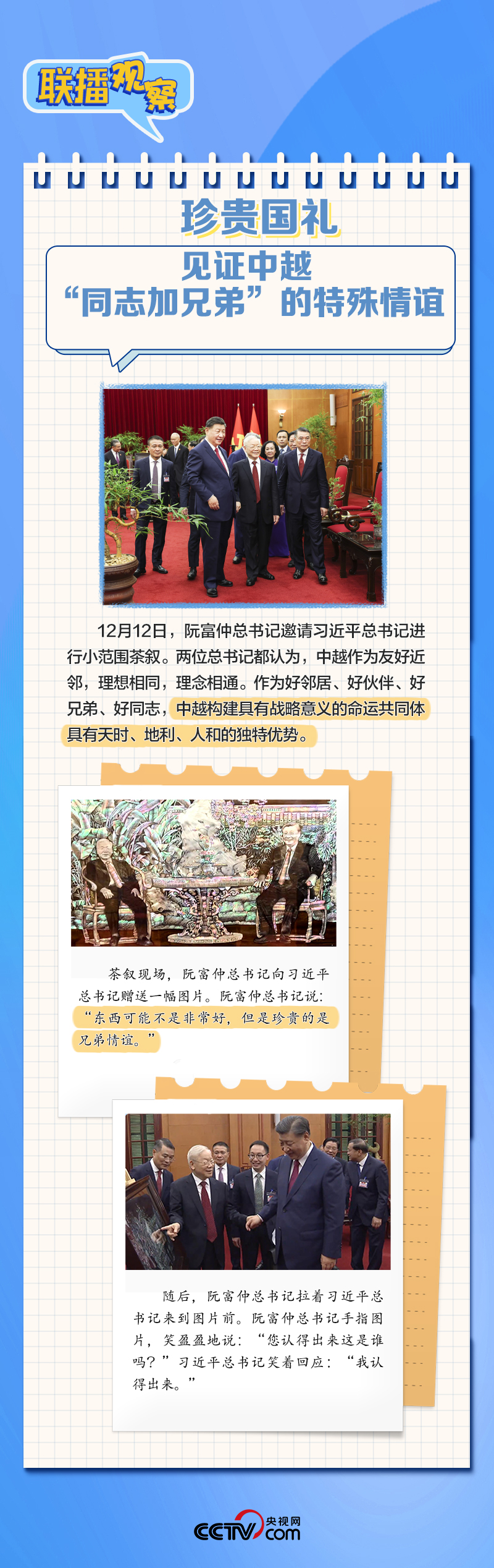 聯(lián)播+“到鄰居家串門、到同志家做客”是中越兩黨兩國傳統(tǒng)友誼的生動寫照。