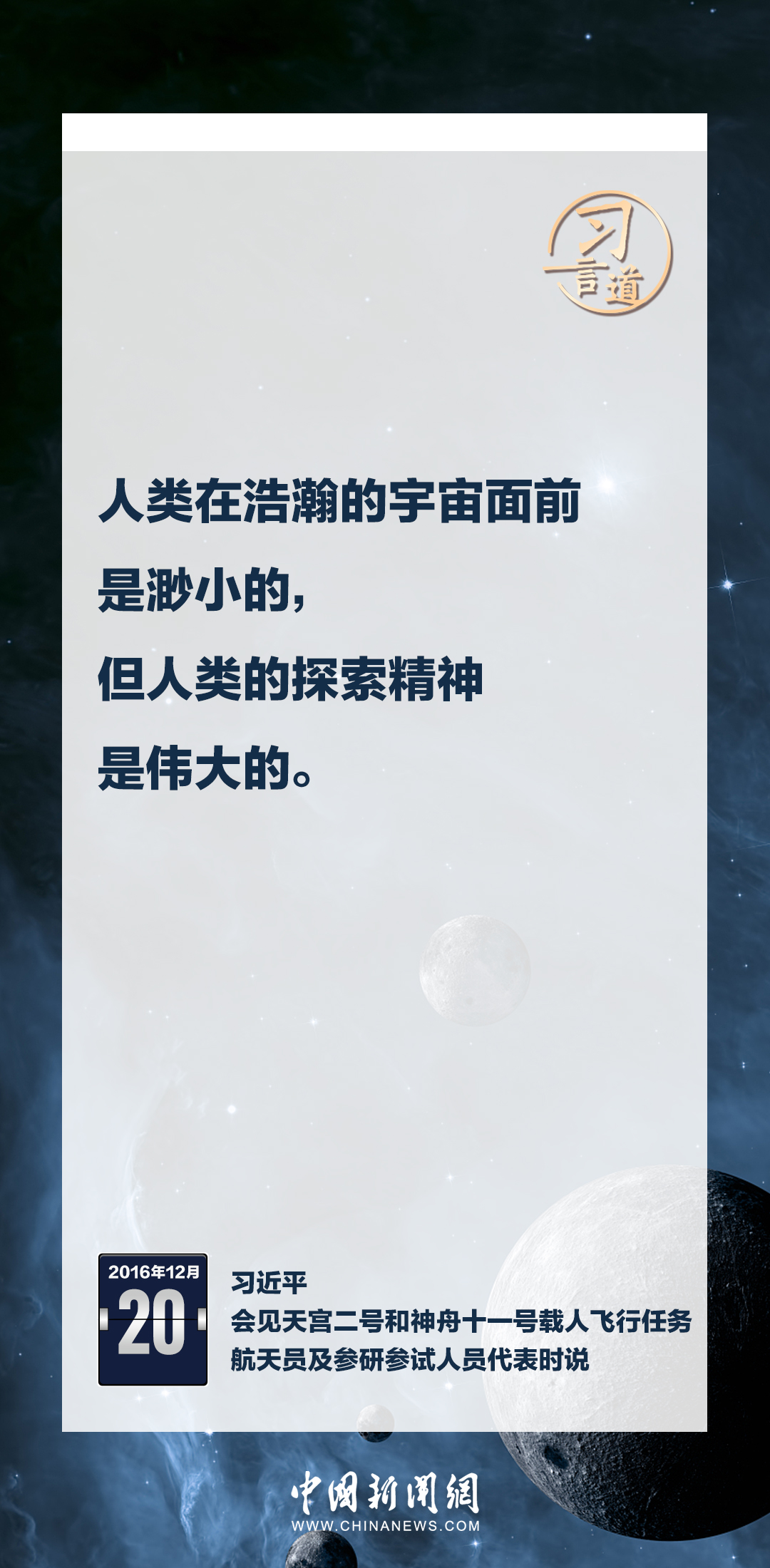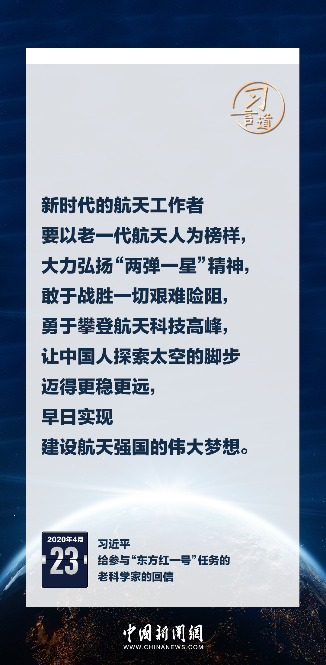 建設(shè)航天強(qiáng)國(guó)要靠一代代人接續(xù)奮斗。在不同場(chǎng)合,習(xí)近平總書記頻頻提及航天精神,激勵(lì)一代代中國(guó)人不斷奮進(jìn)、筑夢(mèng)太空。