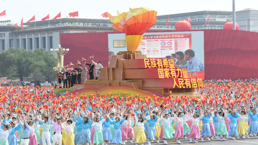 ??篇篇賀詞,團(tuán)結(jié)是“大江南北披上紅色盛裝,人們臉上洋溢著自豪的笑容,《我和我的祖國》在大街小巷傳唱”;是“逆行出征的豪邁”“頑強(qiáng)不屈的堅守”“患難與共的擔(dān)當(dāng)”“英勇無畏的犧牲”“守望相助的感動”;是“廣大軍民不畏艱險,同心協(xié)力抗洪救災(zāi)”……