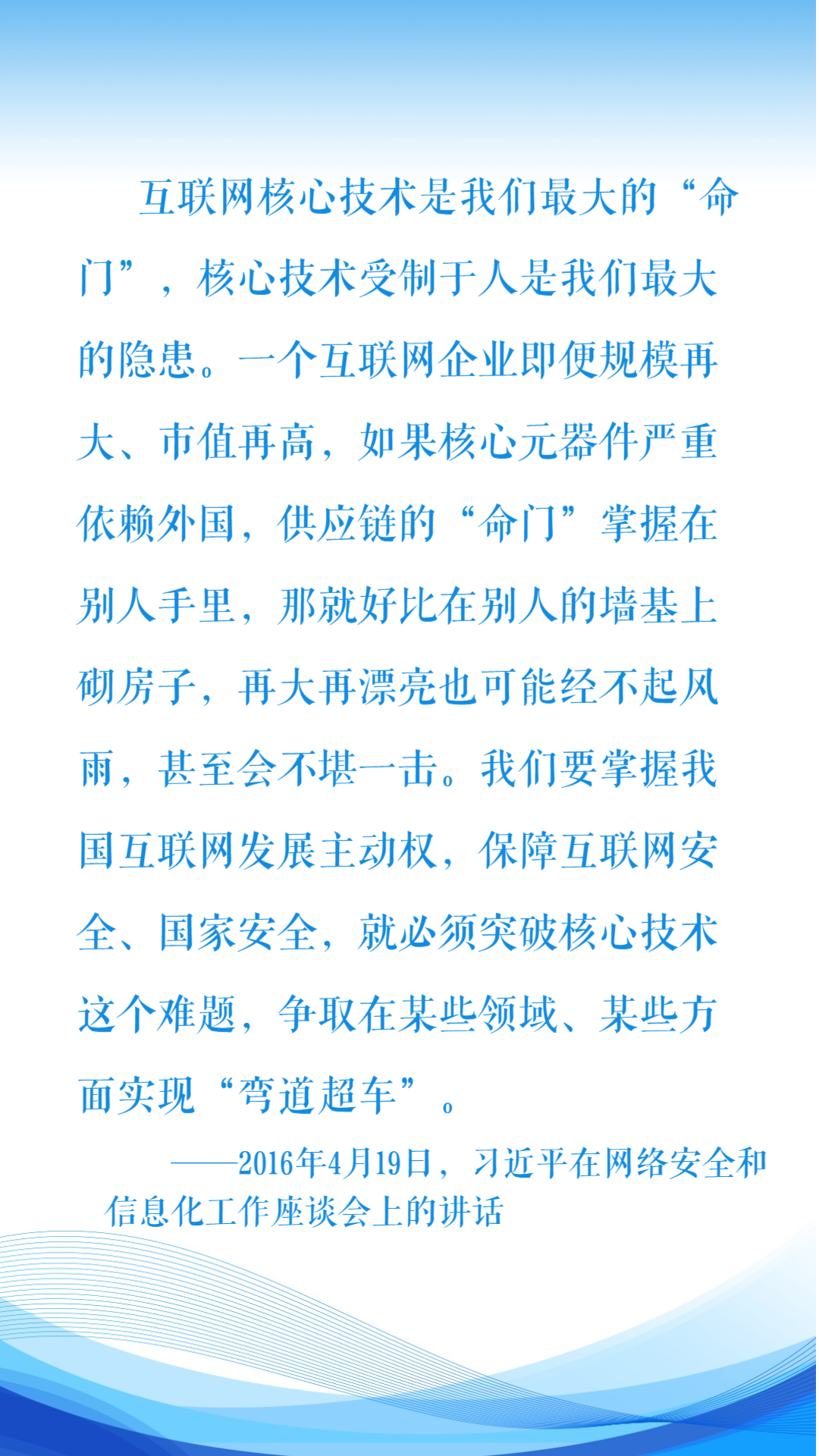 網(wǎng)信事業(yè),代表著新的生產(chǎn)力和新的發(fā)展方向。網(wǎng)信領(lǐng)域的競爭,也是不同國家數(shù)字關(guān)鍵核心技術(shù)自主創(chuàng)新能力的競爭。要在網(wǎng)絡(luò)時代保障國家安全,要推進(jìn)中國式現(xiàn)代化,就必須牽住數(shù)字關(guān)鍵核心技術(shù)自主創(chuàng)新這個“牛鼻子”,解決核心技術(shù)受制于人的隱患,提升自主創(chuàng)新能力,努力實現(xiàn)高水平科技自立自強。(肖聰聰)