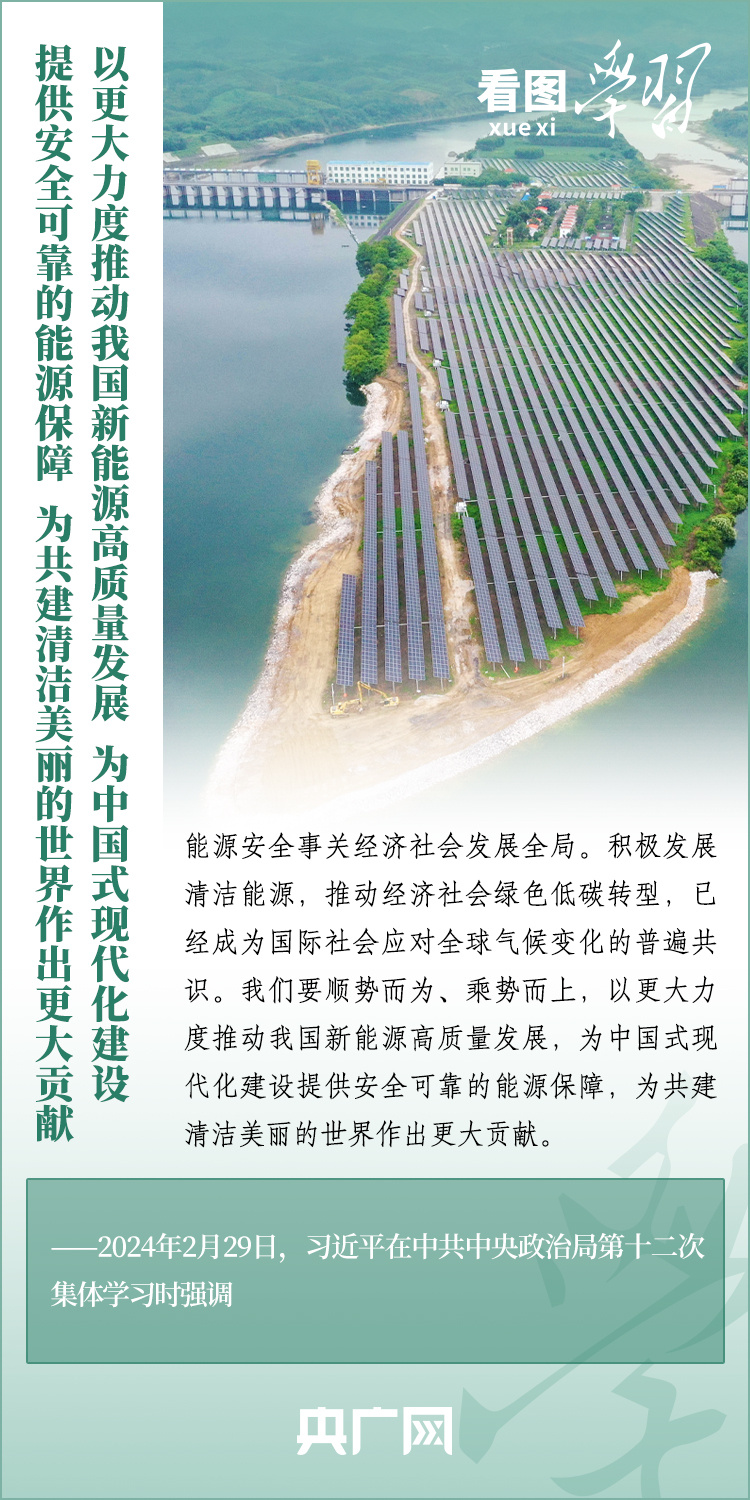 在主持最新一次集體學(xué)習(xí)時(shí),總書記說,我們要順勢(shì)而為、乘勢(shì)而上,以更大力度推動(dòng)我國(guó)新能源高質(zhì)量發(fā)展,為中國(guó)式現(xiàn)代化建設(shè)提供安全可靠的能源保障,為共建清潔美麗的世界作出更大貢獻(xiàn)。