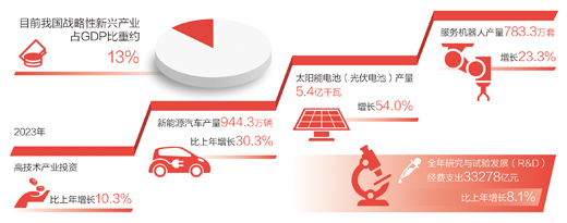 發(fā)展壯大戰(zhàn)略性新興產(chǎn)業(yè)。“戰(zhàn)略性新興產(chǎn)業(yè)具有創(chuàng)新活躍、技術密集等特點,為新質(zhì)生產(chǎn)力發(fā)展壯大提供了巨大空間?!备呶拇碚f,近年來,我國戰(zhàn)略性新興產(chǎn)業(yè)蓬勃發(fā)展,目前戰(zhàn)略性新興產(chǎn)業(yè)占GDP比重約13%。