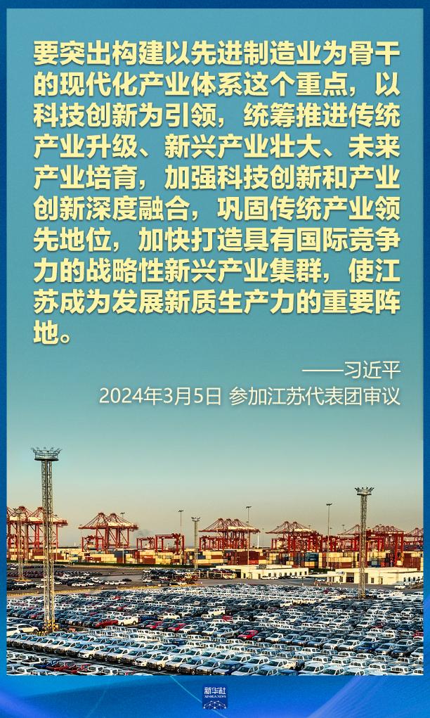 5日下午,習(xí)近平在參加他所在的十四屆全國人大二次會議江蘇代表團(tuán)審議時(shí)強(qiáng)調(diào),因地制宜發(fā)展新質(zhì)生產(chǎn)力。