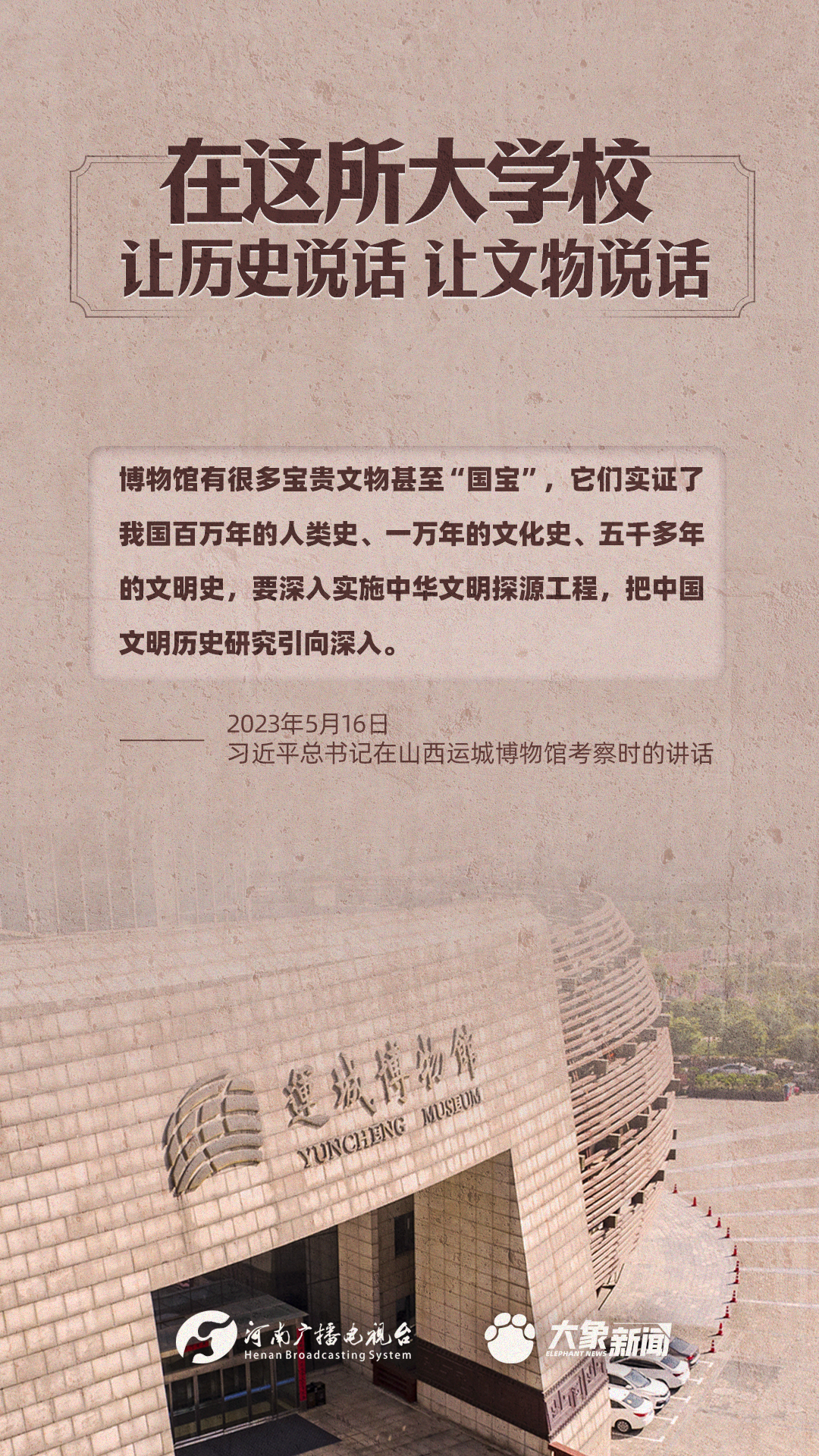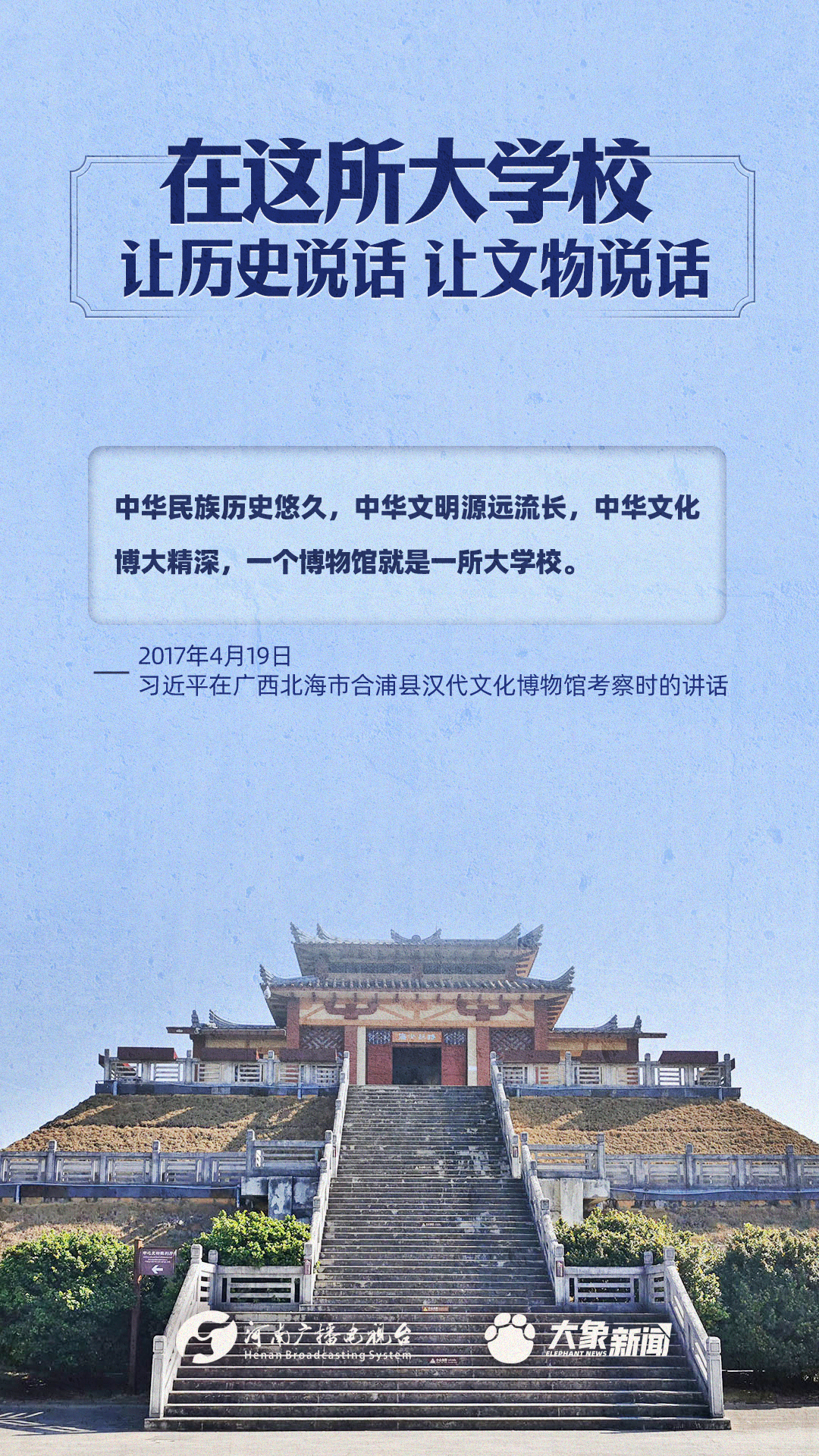 習(xí)近平總書記一直高度重視博物館工作,多次作出重要講話,強(qiáng)調(diào)“一個博物院就是一所大學(xué)?!?,指出“讓歷史說話,讓文物說話”,要求“守護(hù)好、傳承好、展示好中華文明優(yōu)秀成果”等等,金句連連。大象新聞進(jìn)行了認(rèn)真梳理,邀您一起學(xué)習(xí)。