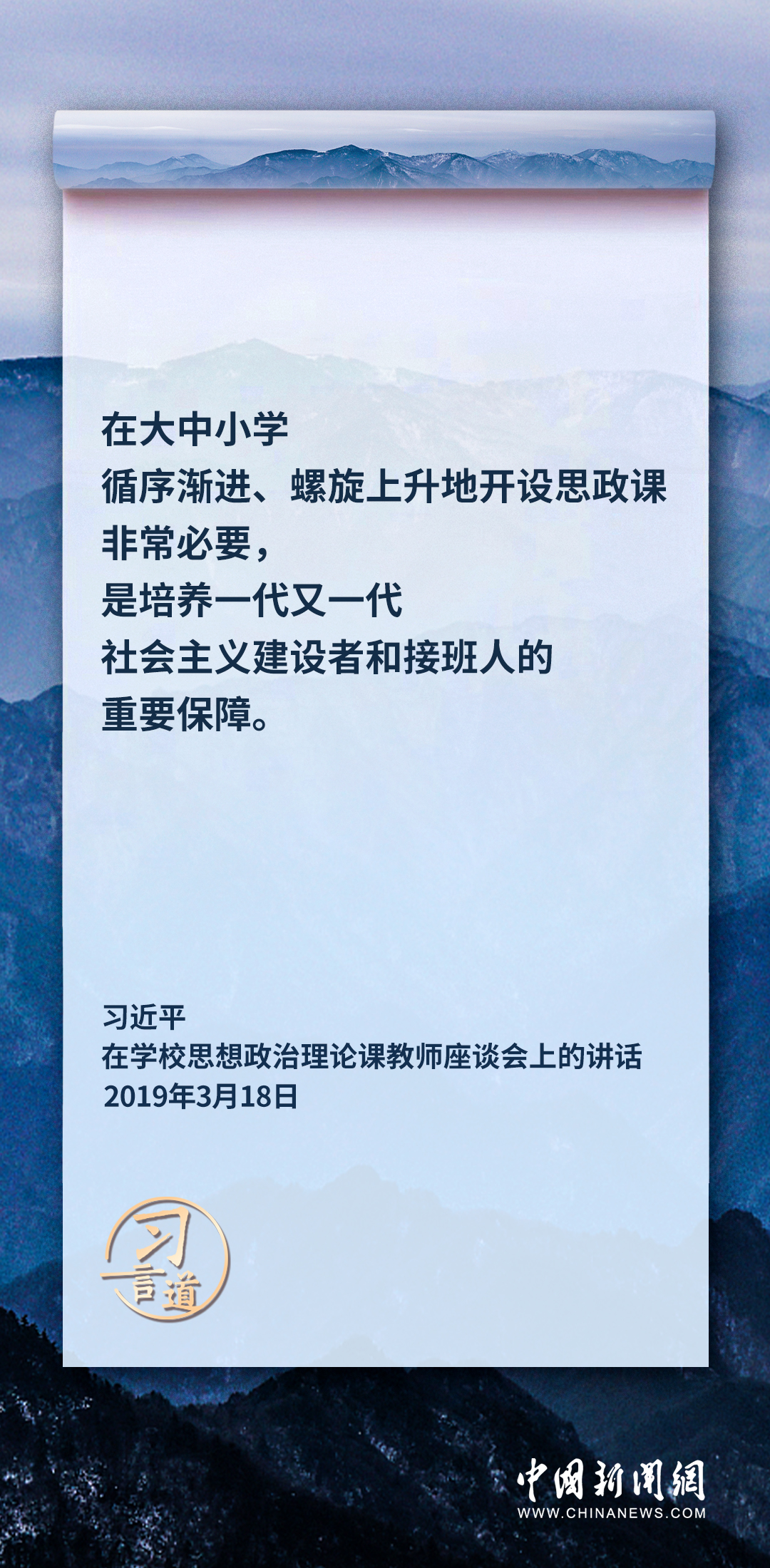 “蒙以養(yǎng)正,圣功也?!绷暯娇倳浉叨戎匾曀颊n建設,強調在大中小學循序漸進、螺旋上升地開設思政課非常必要,是培養(yǎng)一代又一代社會主義建設者和接班人的重要保障。