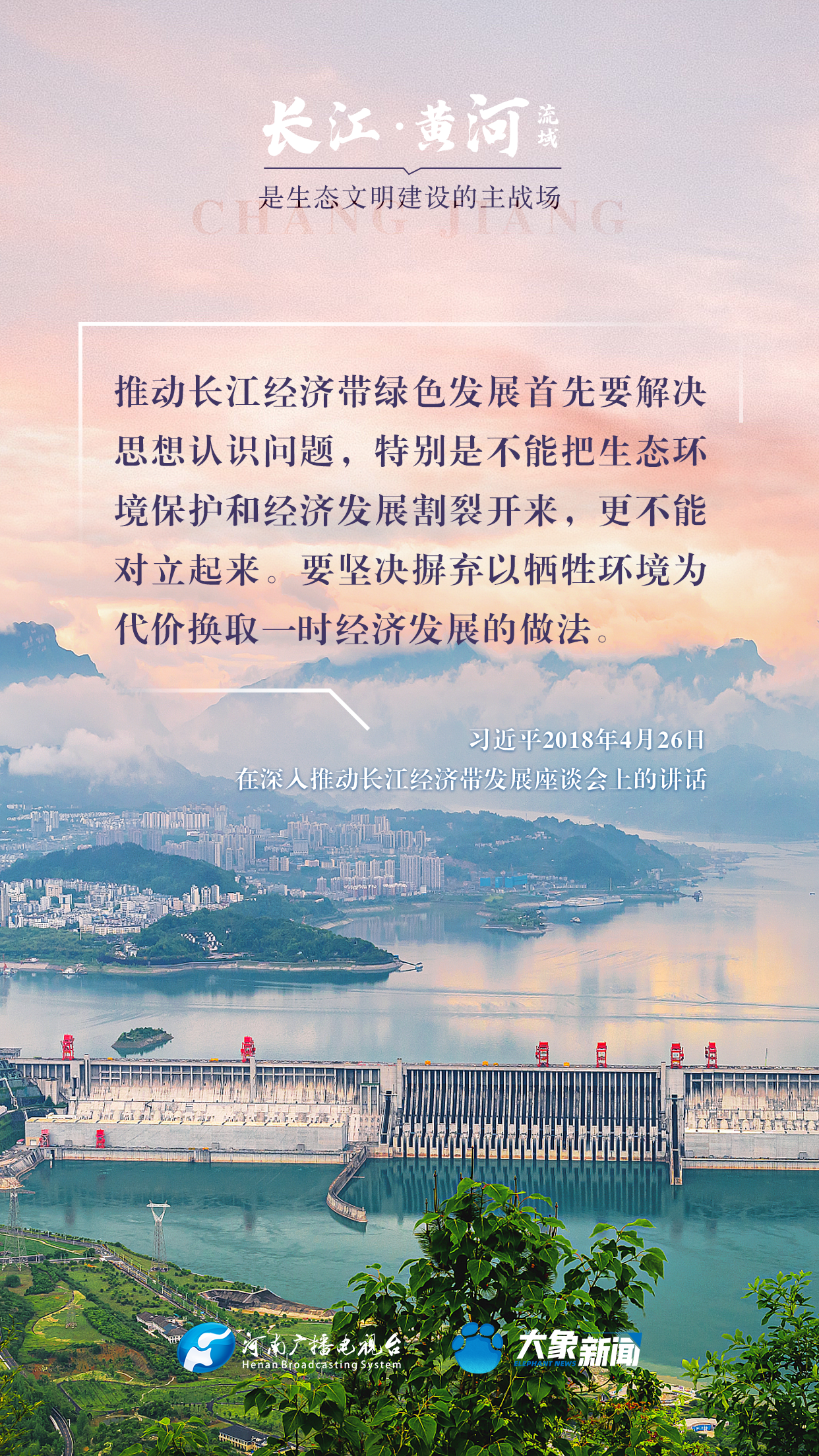 長江、黃河都是中華民族的母親河,習(xí)近平總書記高度重視長江、黃河的生態(tài)保護(hù),多次諄諄告誡:“保護(hù)母親河是事關(guān)中華民族偉大復(fù)興和永續(xù)發(fā)展的千秋大計”“長江、黃河流域是生態(tài)文明建設(shè)的主戰(zhàn)場”等等。在第55個世界地球日到來之際,大象新聞與您一起,感受總書記對母親河的深厚情懷。