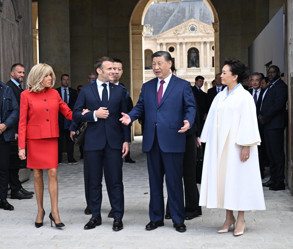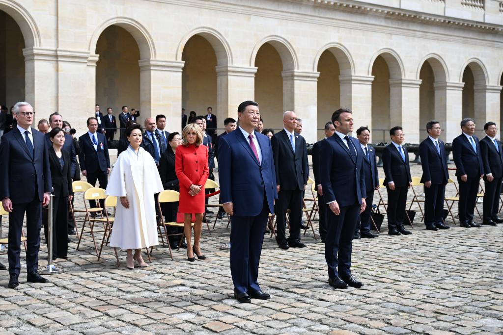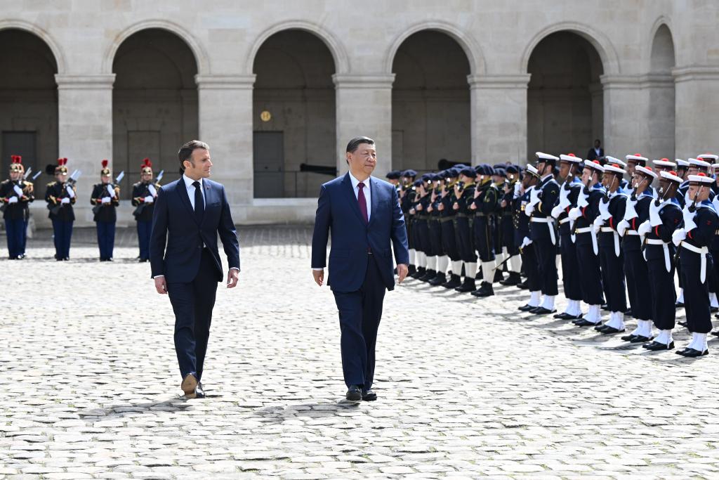 ??當(dāng)天下午,習(xí)近平在巴黎出席馬克龍舉行的隆重盛大歡迎儀式。兩國(guó)元首檢閱法蘭西共和國(guó)衛(wèi)隊(duì)和陸海空三軍儀仗隊(duì),并觀看分列式。
