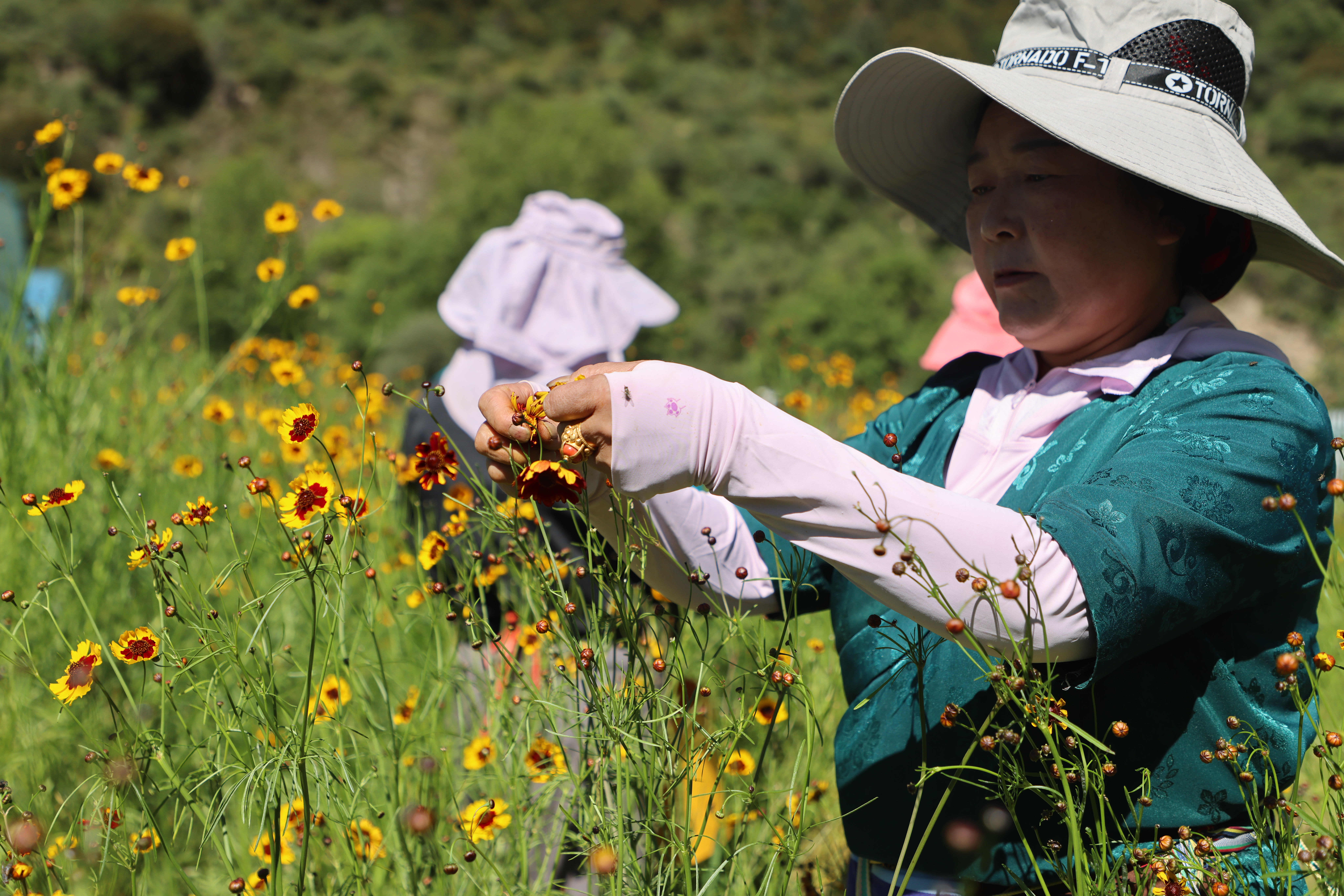村民在基地采摘藏菊。