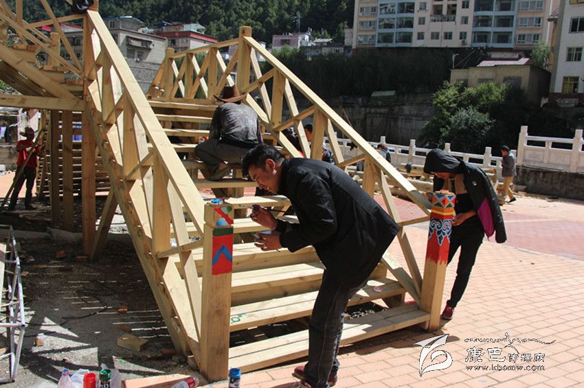 “在深秋艷陽(yáng)的照射下,環(huán)山路木質(zhì)棧道的長(zhǎng)廊上圖案絢麗色調(diào)鮮明。現(xiàn)場(chǎng)有序地堆放著紅色的地磚和白色的木材。藏族畫(huà)匠在專心描摹,工人們的鋸子有節(jié)奏地發(fā)出聲音。在公主橋的施工現(xiàn)場(chǎng),村民們有說(shuō)有笑地忙著平路基,抬石頭、撮泥巴、砌墻。”這是近日筆者在康定文成環(huán)山路施工現(xiàn)場(chǎng)看到的熱鬧場(chǎng)面。