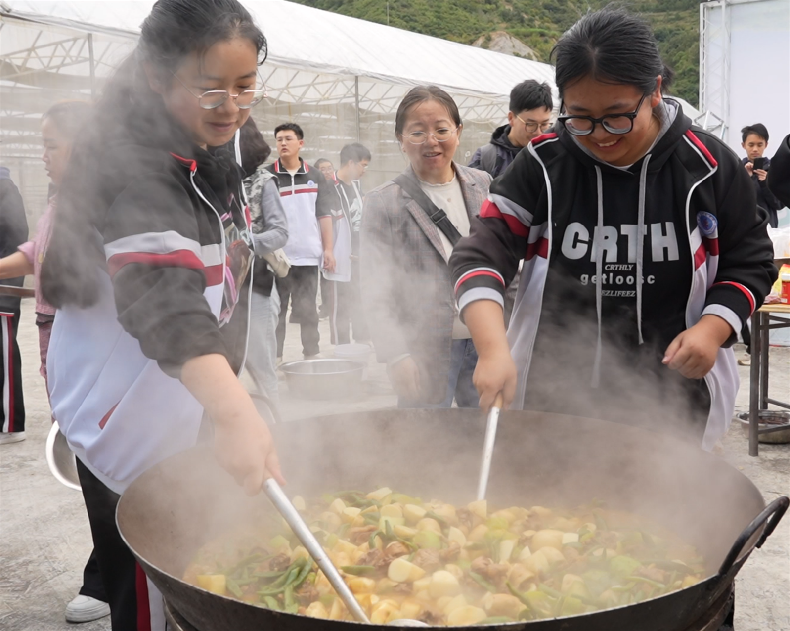 本網(wǎng)訊 “今天收獲了我們自己種的土豆,跟大家吃了壩壩宴,非常有意義,讓我體會到了一粥一飯來之不易。”瀘定中學高二3班馬灝文高興地說。