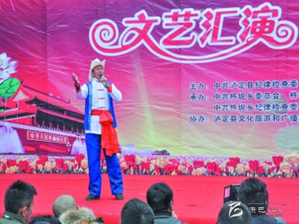 本網訊(姜濤 文/圖)12月22日,瀘定縣在杵坭鄉(xiāng)舉辦黨風廉政建設宣傳教育文藝匯演,全縣各鄉(xiāng)鎮(zhèn)黨委主要負責人、杵坭鄉(xiāng)機關干部職工、各村財政供養(yǎng)人員、中心校學生、群眾400多人觀看了演出。 演出形式豐富多彩,表演者用曼妙的歌聲歌頌廉政建設給人民群眾帶來的實惠,唱出了杵坭鄉(xiāng)增強廉潔自律意識的火熱情懷;用舞蹈來展現廉政建設開出的和諧之花,營造出一種清正廉潔、求真務實的良好氛圍。每一個節(jié)目都緊緊圍繞著清正廉潔、秉公守法這一主題,演出精彩紛呈、高潮迭起,精彩的表演引來觀眾的連連喝彩和陣陣掌聲。杵坭鄉(xiāng)山歌王吳全清用山歌《黨員干部走基層》生動反映出中央八項規(guī)定出臺以來鄉(xiāng)鎮(zhèn)干部在改進“四風”方面取得的喜人變化,讓群眾真切地感受到“廉”就在身邊,弘揚廉政文化建設所取得的輝煌成就。