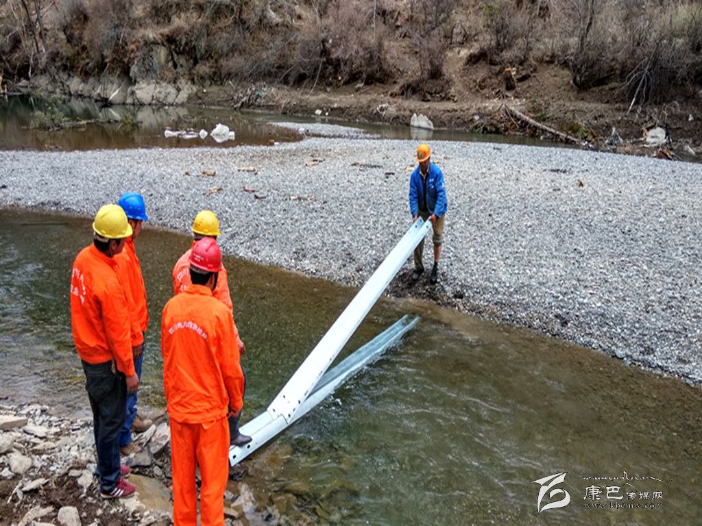 第一小組,由鄉(xiāng)城縣供電公司領(lǐng)導(dǎo)帶隊,身先士卒,肩扛繩拉地搬運(yùn)電桿。