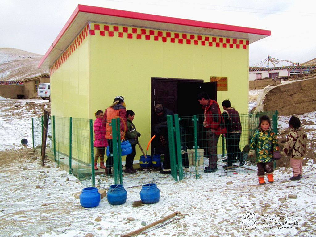 經(jīng)過反復設(shè)計檢驗,地質(zhì)工程勘察院最終采用了“泵房、水池雙重保溫、定時供水及時排水”的方案來解決以上問題。在儲水箱和里外出水管上都裹上厚厚的保溫隔熱材料,非凍期24小時按需供水,冰凍期因需要及時排水來確保水箱、水管無殘留水被冰凍而采取早中晚定時供水。通過一個水文年尤其是一個寒冬的考驗,50口示范井成功地為最低零下45度的石渠縣包蟲病區(qū)的居民提供了清潔水源,解決了高原寒冬供水的難題。
