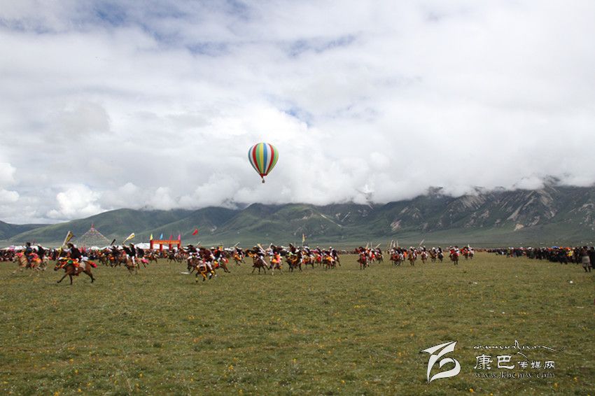 理塘游客坐上熱氣球看賽馬