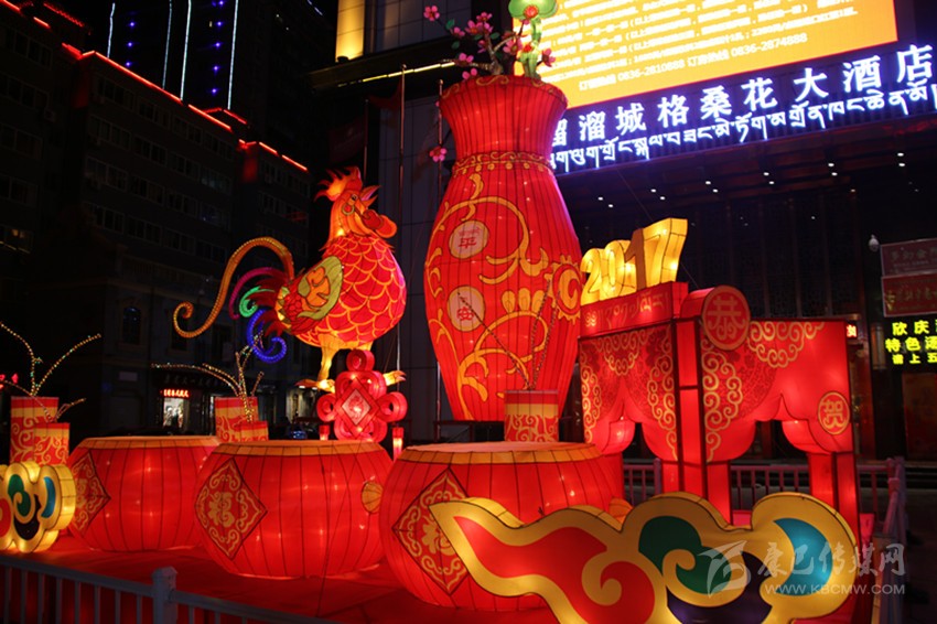 據(jù)該公司負(fù)責(zé)本次花燈設(shè)計(jì)的設(shè)計(jì)師鄭才學(xué)介紹,本次花燈每組主題不同,以全新的設(shè)計(jì)理念、歡樂(lè)祥和的氛圍、獨(dú)具特色的造型,向世人展現(xiàn)獨(dú)特的甘孜魅力。向陽(yáng)橋頭的花燈主題為新春快樂(lè),整個(gè)花燈呈火紅色,巨型“春”字搭配藏族繪畫中最常見但寓意深刻的吉祥八寶圖案,以及舞獅子、大紅燈籠、中國(guó)結(jié)等融為一體,為來(lái)到康定的客人第一時(shí)間送上熱情的新春?jiǎn)柡?;情歌廣場(chǎng)的花燈主題為鼓舞康定,以被譽(yù)為中國(guó)民間藝術(shù)瑰寶的大紅鼓作為人民歡慶盛世、贊美和諧的情感載體,充滿雄渾之氣,寓意著我州在時(shí)代發(fā)展的浪潮中擊鼓奮進(jìn)、得勝而鳴;情歌大廈門口的花燈主題為金雞送平安,以中國(guó)傳統(tǒng)生肖年文化為背景,配合中國(guó)結(jié)和爆竹,喜慶而不失莊重,寓意著為全州人民送去平安吉祥;將軍橋頭的花燈主題為童子賀歲,火紅的燈籠搭配喜慶的福娃及爆竹,為全州各族人民送上新年的祝福;17隊(duì)三岔路口的花燈主題為和諧康定,巨大的荷花藝術(shù)造型結(jié)合動(dòng)感的LED光源,造型高低錯(cuò)落,寓意和諧、和美,體現(xiàn)在州委、州政府的堅(jiān)強(qiáng)領(lǐng)導(dǎo)下,人民安居樂(lè)業(yè),和諧美滿。最霸氣、最吸引人的當(dāng)屬情歌公園主題為吉祥多福的花燈,整個(gè)花燈由六個(gè)直徑一米半左右的福字燈籠,環(huán)繞一個(gè)直徑達(dá)3米左右的福字燈籠組合而成,主燈籠的燈柱高大而厚重,環(huán)繞的六個(gè)燈柱上配有吉祥八寶圖案,寓意著全州物產(chǎn)豐富,人民的生活紅紅火火,一年更比一年好。