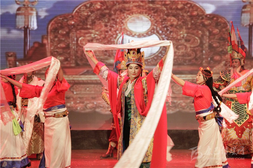 演出于晚8點正式開始,演員們的傾情表演,為觀眾送上了一場格薩爾文化的藝術(shù)盛宴。臺上動聽的歌聲、悠揚(yáng)的旋律、精彩豐富的劇情吸引著觀眾的目光。臺下觀眾熱情高漲,掌聲不斷。
