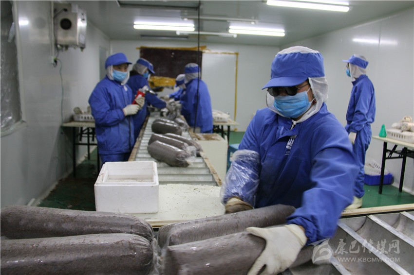 村民正在包裝菌棒。