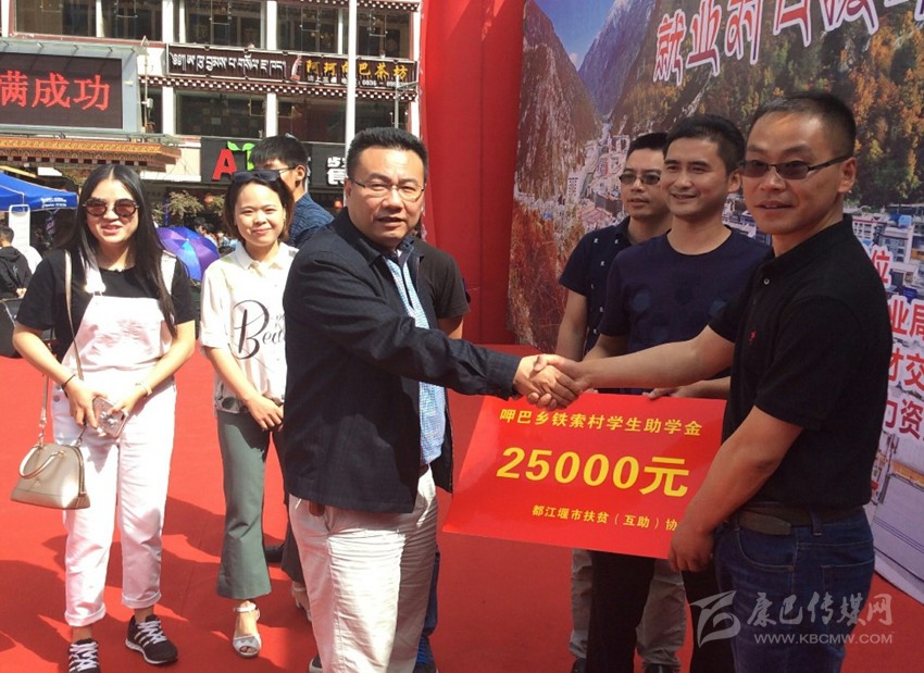 都江堰市扶貧互助協(xié)會在康定市呷巴鄉(xiāng)鐵索村舉行了“助學(xué)筑夢助脫貧”主題活動