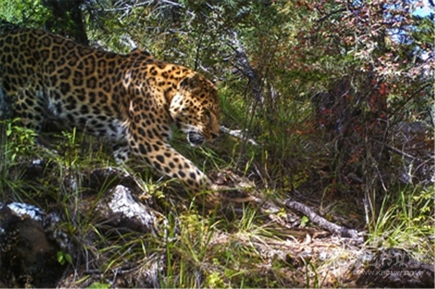 2016年11月7日5時03分,天還沒亮?xí)r,相機拍到了豹子的行蹤。
