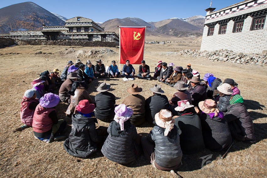 會(huì)議開始前,全體與會(huì)黨員在村民代表見證下重溫入黨誓詞。隨后,該鄉(xiāng)黨委書記布初用藏漢雙語現(xiàn)場(chǎng)傳達(dá)了黨的十九大主要精神,并重點(diǎn)闡述了黨的十九大關(guān)于鄉(xiāng)村振興戰(zhàn)略和民族團(tuán)結(jié)和諧等內(nèi)容。最后,全體黨員群眾圍繞黨的十九大報(bào)告進(jìn)行了交流發(fā)言。