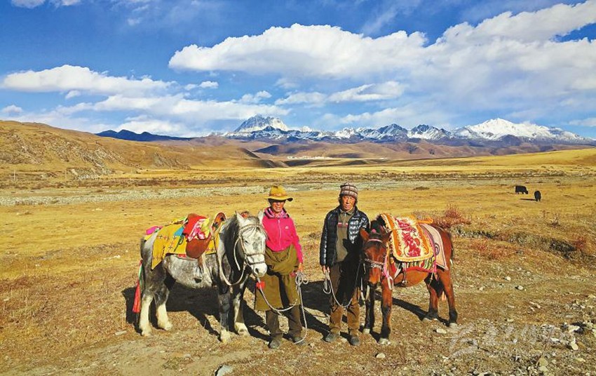 本網(wǎng)訊(劉鈞 文/圖)作為康定市純牧業(yè)鄉(xiāng)鎮(zhèn)的塔公鎮(zhèn),今年7月全力推進(jìn)綜合整治以來,實(shí)現(xiàn)牧旅結(jié)合,塔公草原天更藍(lán)水更綠,成為游客向往的天堂。初冬的塔公草原,下馬龍村牧民石多(左)正和同伴為游客提供騎游服務(wù)。