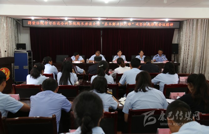 本網(wǎng)訊(志瑪擁忠)為深入學(xué)習(xí)貫徹黨的十九大和十九屆二中、三中全會(huì)精神,全面貫徹落實(shí)省委十一屆三次全會(huì)精神,8月6日,我院組織全院干警于四樓會(huì)議室召開干警大會(huì),傳達(dá)全州法院院長(zhǎng)座談會(huì)暨“基本解決執(zhí)行難”攻堅(jiān)決戰(zhàn)推進(jìn)會(huì)精神,院黨組書記、院長(zhǎng)孫菊花主持會(huì)議。