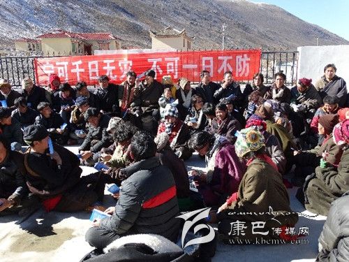日前,康定縣防災(zāi)減災(zāi)局走進(jìn)牧區(qū),開展以“寧可千日無災(zāi),不可一日不防”為主題的防震減災(zāi)知識(shí)宣傳活動(dòng),為牧區(qū)群眾普及防震減災(zāi)科普知識(shí)。至目前,該局已在折西塔公、呷巴等鄉(xiāng)鎮(zhèn)開展宣傳活動(dòng)、發(fā)放防震避震宣藏漢雙語知識(shí)讀本兩千余份,通過宣傳教育活動(dòng)直接受益的牧區(qū)群眾已逾千人。圖為開展防災(zāi)減災(zāi)知識(shí)宣傳現(xiàn)場(chǎng)。 (田發(fā)進(jìn) 攝影報(bào)道)