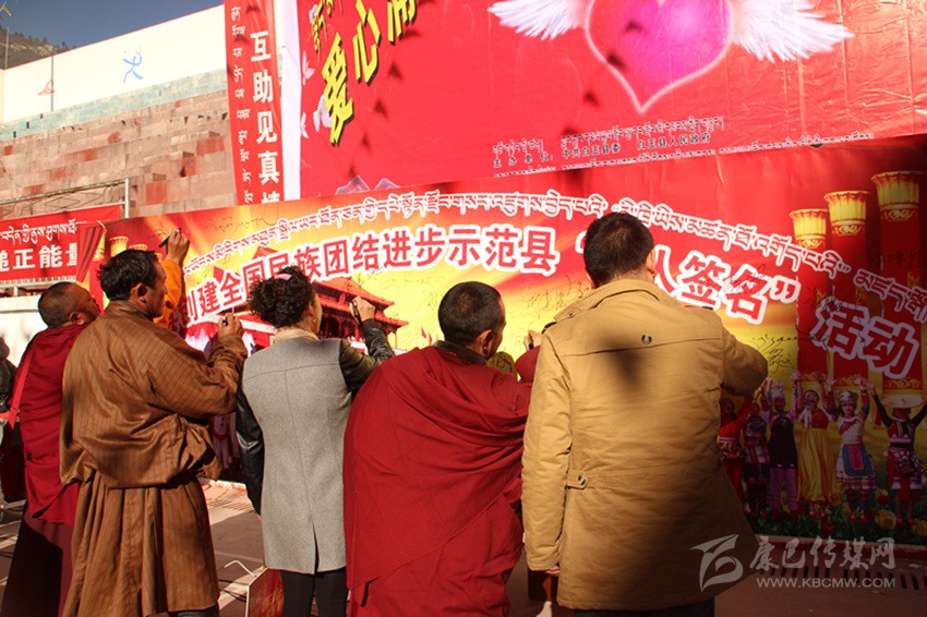 其實,在白玉,像澤稱降措這樣感人肺腑的故事絕非個案。采訪中,筆者細細梳理五年來白玉的創(chuàng)建舉措與成績,完全可以用“務(wù)實”“扎實”這四個字來形容。自2014年創(chuàng)建活動啟動以來,縣委、縣政府嚴格按照“三年創(chuàng)建、四年提升”要求,緊扣“八進活動、共建對子”兩個關(guān)鍵,聚焦“民族團結(jié)促發(fā)展、民族團結(jié)促穩(wěn)定、民族團結(jié)促民生”三大目標,采取“精準安排、精準施策、精心打造、精細管理”四項舉措,并通過層層簽訂目標責任書和層層落實創(chuàng)建標準、測評指標,進而形成了“黨委統(tǒng)一領(lǐng)導(dǎo)、黨政齊抓共管、部門各司其職、社會廣泛參與”的創(chuàng)建工作格局;采取“年度定方案、季度有督查、月月抓推進、層層重落實”的方式,通過召開專題會、動員會、現(xiàn)場會、督導(dǎo)會、匯報會等形式,抓問題、添措施、促整改、補短板、求提升,一系列動真碰硬的推進,使得創(chuàng)建工作由“虛”變“實”;按照“精準宣講、掛圖作戰(zhàn)、對單宣講、對村消號、定學式”的宣講思路,采取“縣到鄉(xiāng)、鄉(xiāng)進村、村入戶、寺廟與僧尼”四個面對面等方式,并結(jié)合常態(tài)化開展的“四下鄉(xiāng)”活動,廣泛學習宣傳黨的民族理論、宗教政策、法律法規(guī)以及各項惠農(nóng)惠民政策。五年來,全縣累計出動宣講服務(wù)人員1180人次,開展宣講宣教、“四下鄉(xiāng)”活動以及民族團結(jié)“八進”活動多達988場次,覆蓋基層干部、農(nóng)牧民群眾和及寺廟近8萬人次,發(fā)放各類宣傳資料2.3萬余份、圖書光盤4500余本(張),贈送各種書籍4130余冊,放映電影152場次;在主要街道、繁華路段、出租車頂屏、燈箱燈桿以及干線公路沿線堡坎,設(shè)置LED屏、宣傳牌、滾動標語和墻體標語,推送各類創(chuàng)建信息上萬余條,在各機關(guān)、單位、醫(yī)院、學校、寺廟、鄉(xiāng)鎮(zhèn)、村組(社區(qū))設(shè)置民族團結(jié)標語、宣傳櫥窗、展板和文化墻,推出各類宣傳欄2145個、宣傳展板 435個;在縣級宣傳平臺開設(shè)專欄,完成各類主題宣傳300余場次;舉辦創(chuàng)建“萬人簽名”、鍋莊節(jié)、演講比賽、籃球友誼賽、知識競賽、文藝演出等各類民族團結(jié)主題活動近20場,實現(xiàn)了創(chuàng)建宣講宣傳宣教全方位、多層面、立體式和廣覆蓋;切實將民族團結(jié)工作與脫貧攻堅、基層黨建、群眾工作、鄉(xiāng)村治理、依法治縣等有機結(jié)合,大力開展干群結(jié)對認親、干部聯(lián)寺聯(lián)僧、支部共建共創(chuàng)以及警民共建等活動;切實在廣大農(nóng)牧民群眾、幫扶援建隊伍、宗教寺院、學校師生、企業(yè)以及部隊中發(fā)現(xiàn)典型、宣傳典型,進而在全縣上下形成了“學先進、趕先進、當標兵”的濃厚氛圍;采取政策傾斜、整合項目、配套資金等措施,狠抓示范點規(guī)范化建設(shè)。目前,全縣所有鄉(xiāng)(鎮(zhèn))、縣級黨政機關(guān)、武警部隊,45%以上的村(社區(qū))、企事業(yè)單位和寺廟已成為民族團結(jié)進步示范地區(qū)或示范單位;……精準發(fā)力、持續(xù)給力的創(chuàng)建活動,有效形成了創(chuàng)建活動“人人參與、人人推動、人人負責、人人共享”的喜人局面。