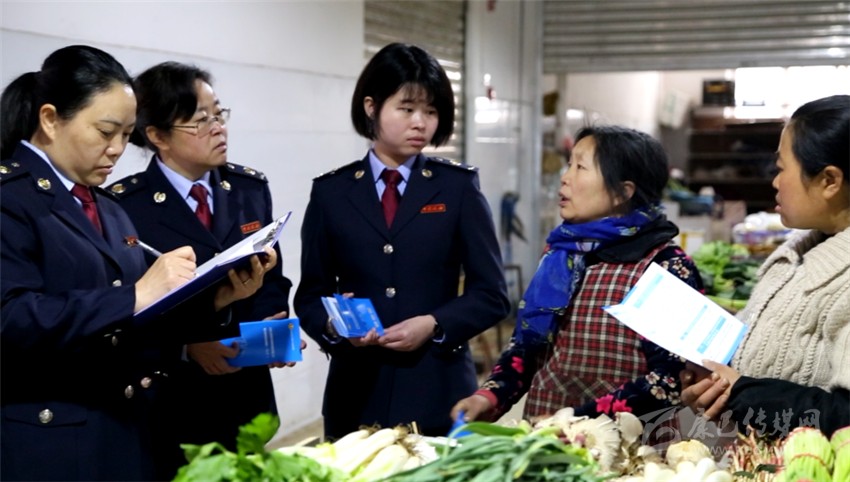 在菜市場宣傳“減稅降費(fèi)”。