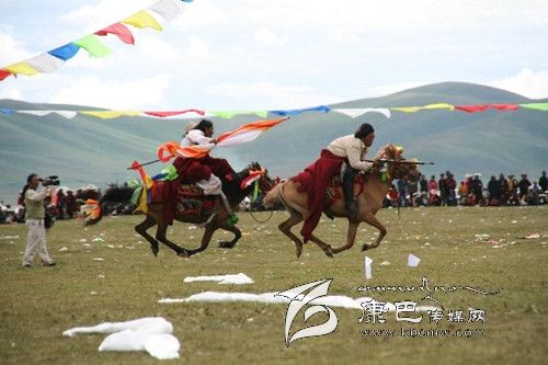 賽馬是廣大藏族群眾十分喜愛的一項體育運動。隨著時代的發(fā)展,賽馬節(jié)的內(nèi)涵不斷拓展,已形成一種內(nèi)容豐富多彩的傳統(tǒng)文化。它不僅是農(nóng)牧民群眾縱情歌舞的聚會,交流農(nóng)畜產(chǎn)品的市場,而且是藏族群眾展示精神風貌的舞臺。在所有民間傳承的藏族節(jié)日中,幾乎都少不了賽馬活動,并且此項活動有著悠久的歷史。圖為石渠牧民正在開展賽馬活動。 (李宏 攝影報道)