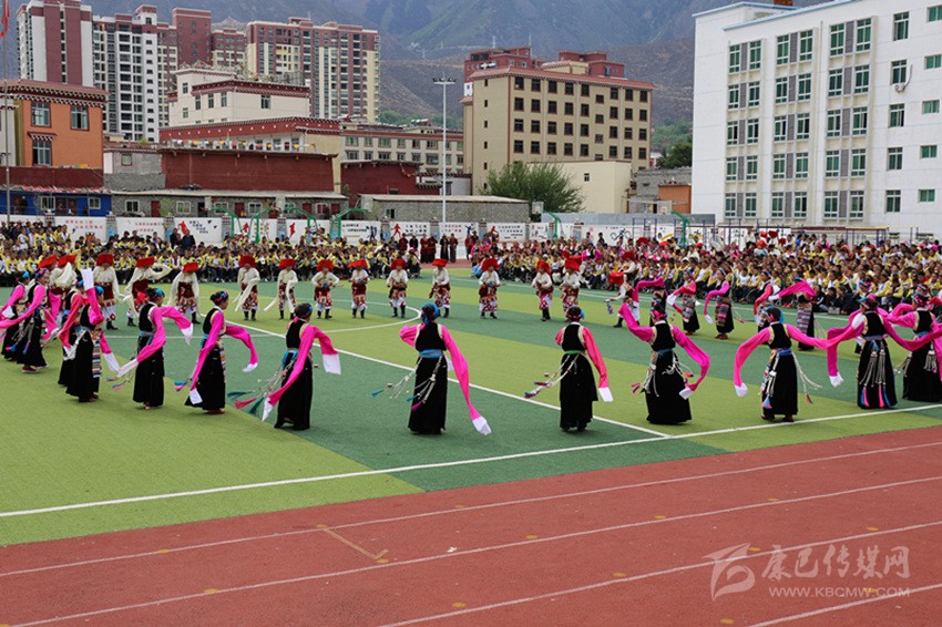 巴塘縣中學學生合唱《我和我的祖國》。