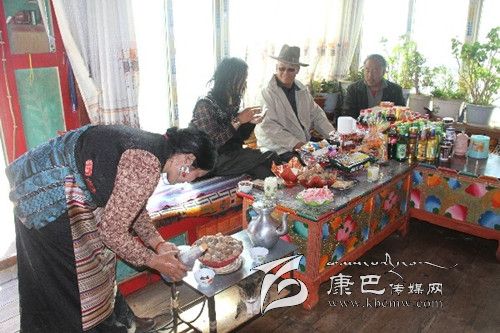 說話間,聽見女兒四郎曲珍和媽媽從廚房里端著牛肉包子走了出來。廚房里冰箱、高壓電飯煲等家用電器一應(yīng)俱全,他興激動地說:“現(xiàn)在,縣上大力實(shí)施農(nóng)村的五通工程,用電也十分方便;以前打酥油茶都用木桶,現(xiàn)在有高原專用的打茶機(jī),既快捷又方便;……”