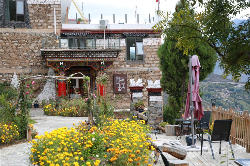 劉國芳告訴記者,花筑田園酒店的誕生,源于她的兒子和廣東東莞幾名游客的一段佳話,兒子安俊杰在跑成都到亞丁包車業(yè)務的時候,認識了包車到亞丁的東莞游客趙雯、常妹、千麗、雙燕和成都的峰哥,一路上,開朗的安俊杰博得了客人的信任和好感。安俊杰邀請她們到甲居藏寨作客。幾位客人到甲居考察后,立即表示愿意投資在聶呷鄉(xiāng)開辦鄉(xiāng)村酒店。劉國芳請示縣鄉(xiāng)領導同意,決定將自己的自留地拿出來合資開辦酒店。5位客人立即出資10萬元用于整修道路,隨后出資100萬元,于2016年按照鄉(xiāng)村酒店的標準開始修建花筑田園酒店。酒店共有18個房間,建筑突出了丹巴嘉絨風格,以玫瑰、菊花、薰衣草等花卉為主,集觀賞、休閑、康養(yǎng)為一體,增強了游客的體驗度和舒適感。2018年5月酒店開門迎客,到今年10月已盈利50多萬元。