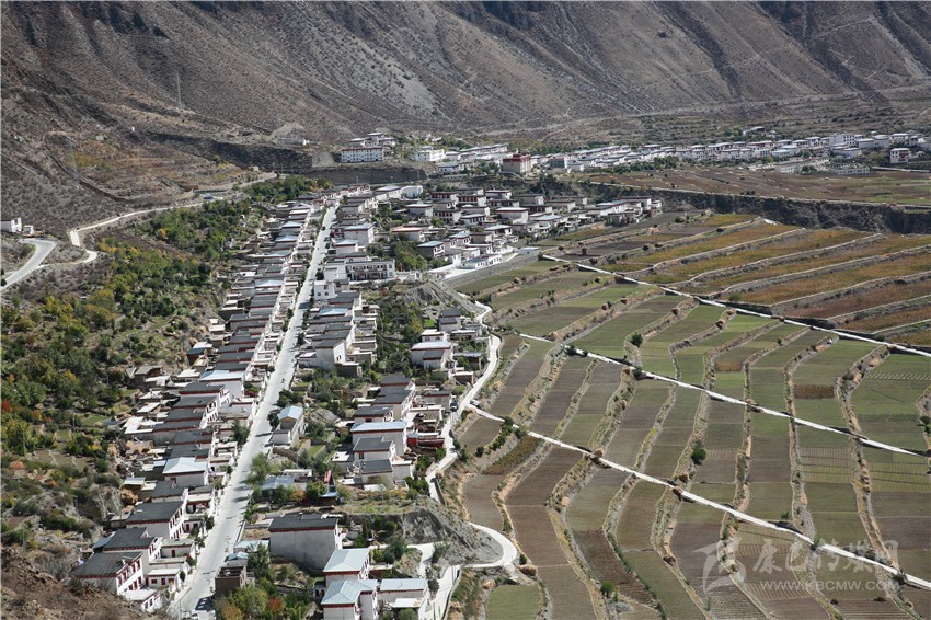作為處于高山峽谷間的得榮縣鄉(xiāng)村,村民大多生活在懸崖峭壁上,或地質(zhì)災(zāi)害嚴(yán)重的地區(qū),生存條件極差,為了徹底斬除窮根,縣委、縣政府把開發(fā)的目光投向了地勢相對平坦的因都壩。11月10日,記者再訪因都壩。初冬的因都壩陽光燦爛,溫暖如春。一棟棟民居、一層層梯田橫臥在青山綠水間,蔚為壯觀。農(nóng)閑季節(jié),村民們愜意地坐在自家庭院的亭子里,喝著酥油茶、品嘗著藏橘、梨子、蘋果和核桃。村道兩旁的藏橘碩果滿枝頭,寬敞的街道、靚麗的民居,一幅壯美的富春山居圖在金沙江畔徐徐展開。