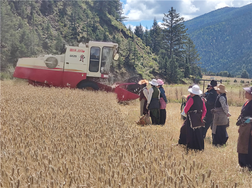 農(nóng)機(jī)助力收割。