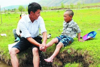 近日,筆者在仁果下鄉(xiāng)采訪時(shí),看到一個(gè)年輕人正在給孩子洗腳。“這個(gè)孩子是你的親戚嗎?”“不是哦,他們都是我的學(xué)生,因?yàn)楹⒆犹×?,就幫他們洗腳,希望孩子從小養(yǎng)成講衛(wèi)生的好習(xí)慣。”看著筆者不解的目光,他解釋說(shuō)。