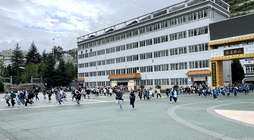 康定中學應(yīng)急疏散演練現(xiàn)場。