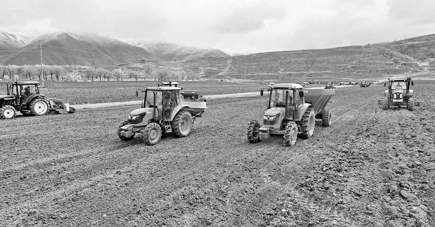 在甘孜縣圣康田園綜合體3900余畝的青稞地里,機器轟鳴、人流涌動,拖拉機、液壓翻轉(zhuǎn)犁、撒肥機、聯(lián)合重耙、播種機等先進農(nóng)業(yè)科技裝備紛紛亮相,翻耕、播種和施肥等一氣呵成。