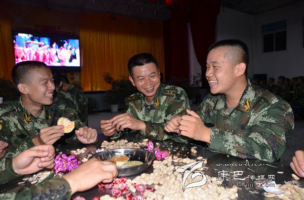 警營俱樂部內(nèi)文藝節(jié)目激情上演,觀眾是清一色的“橄欖綠”,觀眾們掌聲沸騰,臺球、棋牌愛好者對戰(zhàn)廝殺,酣暢淋漓。室外的比賽正激烈進(jìn)行,新兵們沉浸在歡樂的海洋里。為讓初上高原的新戰(zhàn)士們在警營過一個愉快溫暖的中秋節(jié),教導(dǎo)隊領(lǐng)導(dǎo)可謂煞費(fèi)苦心,他們買來月餅、水果等精心安排節(jié)日餐桌,并傾心打造節(jié)日“文化大餐”,讓第一次離家的新兵們感受到部隊大家庭的溫暖。