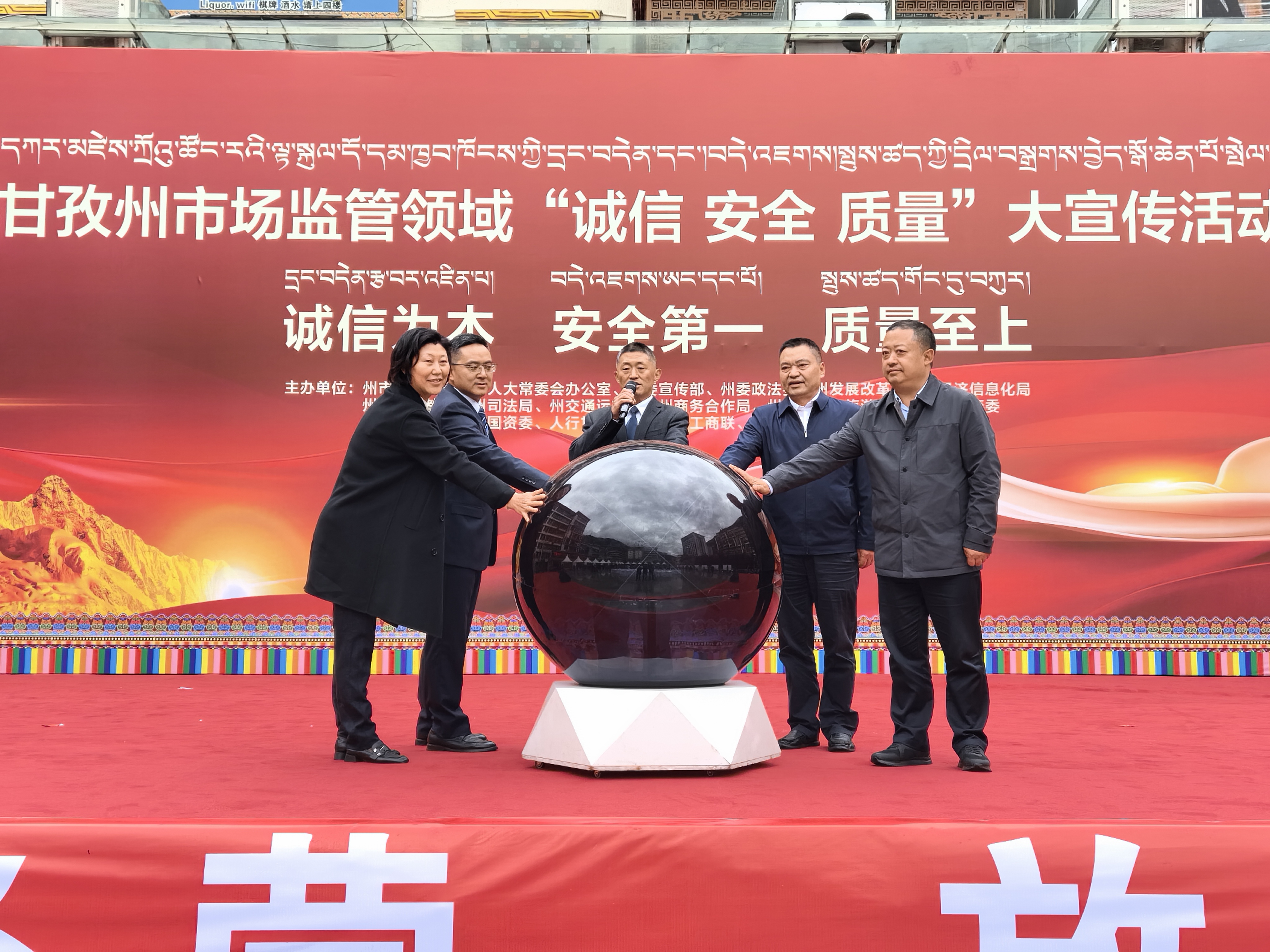 鼓聲激蕩,裙裾飛揚,在歡歌勁舞中,“誠信·安全·質(zhì)量”大宣傳活動啟動。6月27日,康定情歌廣場,甘孜州市場監(jiān)管領(lǐng)域“誠信·安全·質(zhì)量”大宣傳活動啟動,吹響營造良好消費環(huán)境、推動放心消費的沖鋒號。