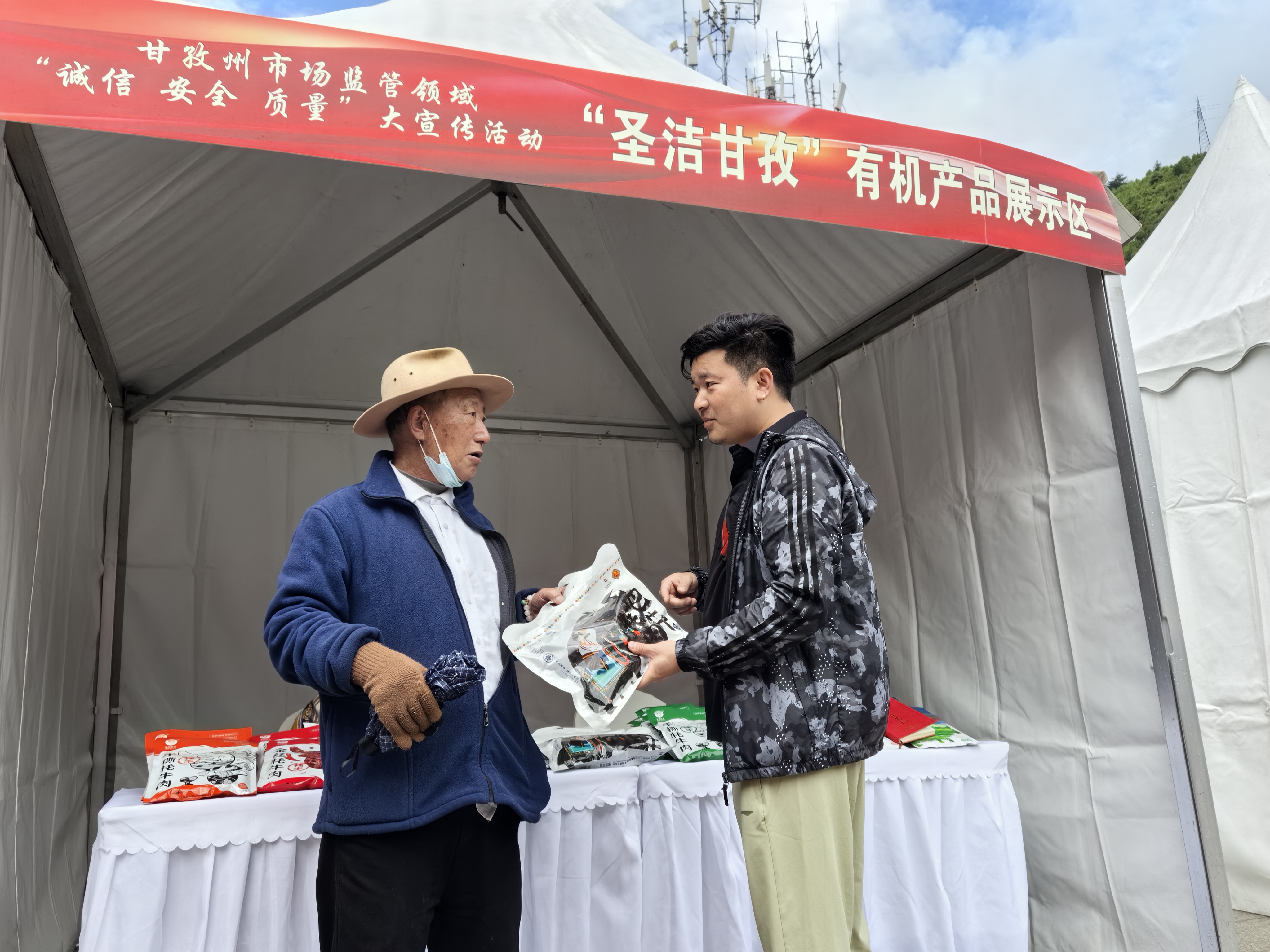 丈夫還未完成支付,妻子已經(jīng)迫不及待地撕開包裝品嘗起來。在“圣潔甘孜”有機產(chǎn)品展示區(qū),來自西安的游客孔大軍和陳繼霞夫婦買到心儀已久的“甘孜好物”?!皩Ω首翁禺a(chǎn),我們原來在網(wǎng)上有所了解,昨天我們吃了正宗的牦牛肉湯鍋,今天又購買到‘資格’的牦牛肉干,感受到甘孜質(zhì)量建設的成效,為我們此次旅游留下了美好記憶?!标惱^霞買到“心頭好物”,高興不已。