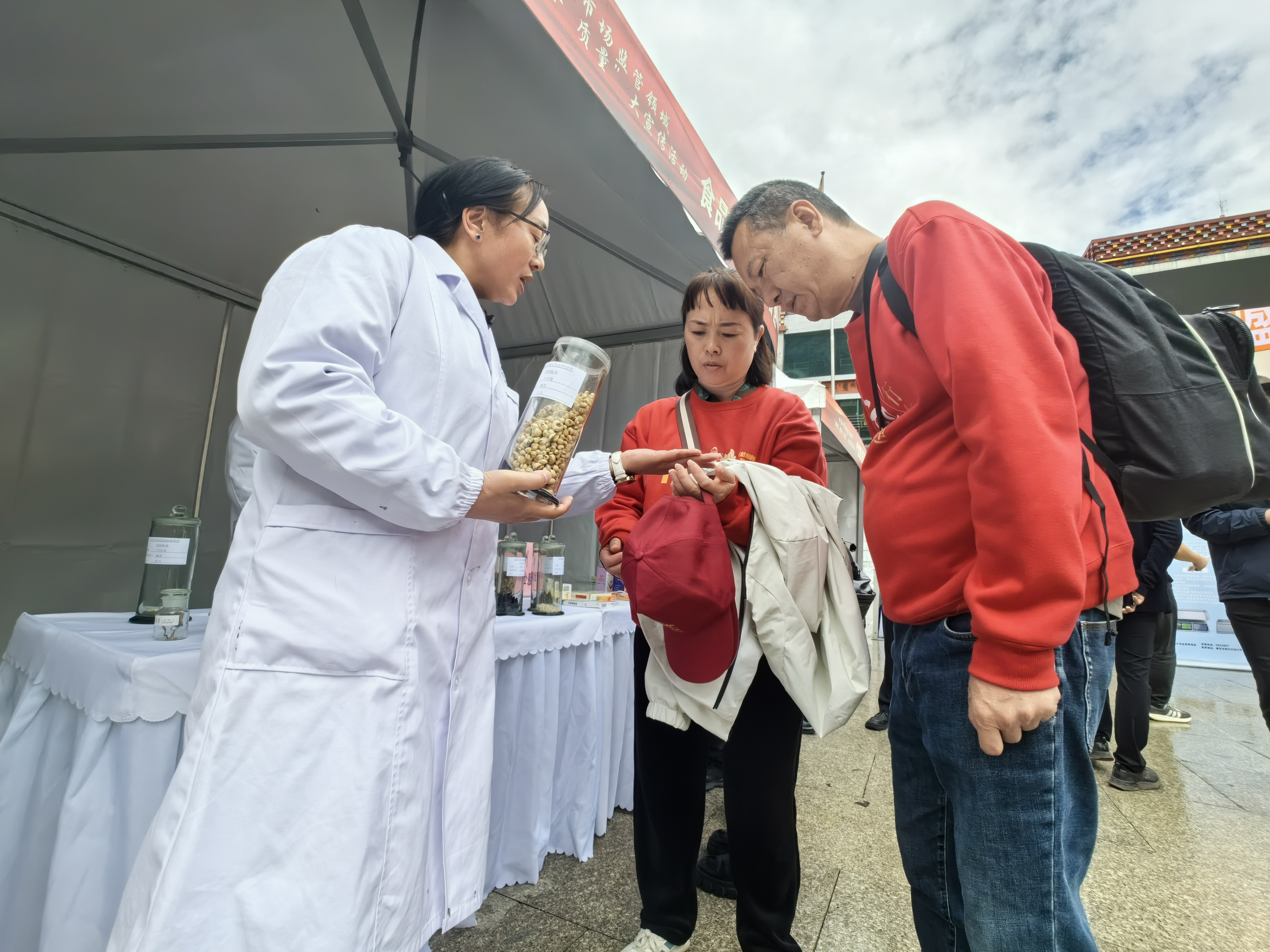 在放心消費科普區(qū),州食品藥品檢驗所工作人員劉玉瓊為重慶游客張繼渝介紹川貝辨別訣竅:“川貝由兩瓣組成,一般是一大一小兩瓣,大瓣包小瓣,大家稱為‘懷中抱月’……”當起“推廣員”、介紹高原特產(chǎn),既讓消費者買到正宗產(chǎn)品,又讓高原特產(chǎn)暢通銷路,走向更大銷售市場。