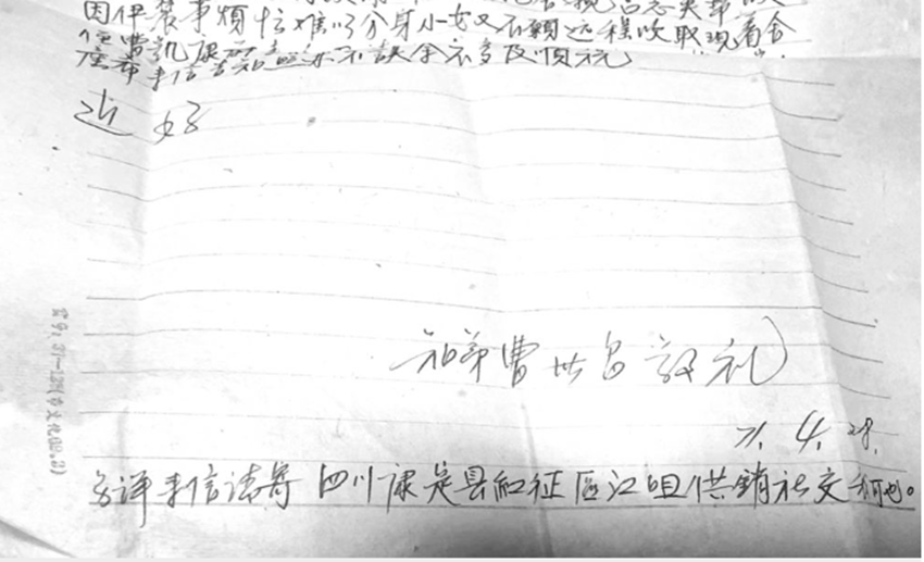 曹世昌老人寄給家人的書信