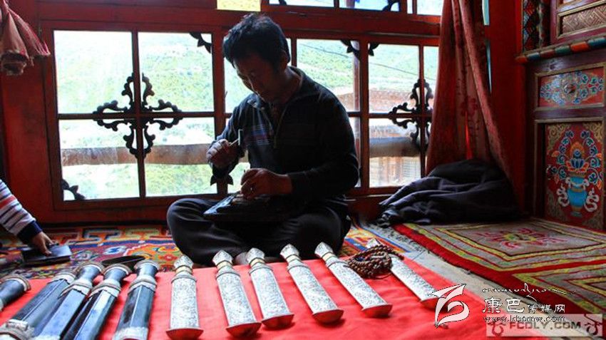 還沒走進白玉縣河坡鄉(xiāng)根秋丹貞家,已傳來叮叮當(dāng)當(dāng)?shù)那么蚵暋?ldquo;我們家祖祖輩輩都從事藏族手工技藝,從以前的兵器到現(xiàn)在的裝飾品等,都是我們純手工制造出來的。”根秋丹貞是“白玉河坡藏族手工技藝”代表性傳承人,每年全國跑訂單,如今已接到了2016年,價值100多萬元。