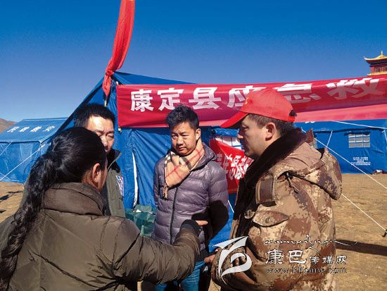 11月25日,袁雅遜(右二)在震中康定縣木雅祖慶學(xué)校勘查災(zāi)情。張漆聯(lián)攝