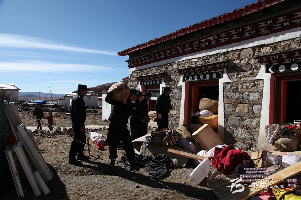 26日一大早,記者驅車趕往塔公江巴村采訪,在江巴村一戶受災群眾家院壩內(nèi),看到了一群熟悉的聲影,他們正在幫村民巴扎轉移糧食。村民巴扎家堆放糧食的房屋外墻受地震影響裂開了幾到明顯的口子,磚瓦散落一地。主人家非常擔心房子垮了將糧食掩埋,這是他辛苦了一年的勞動成果,更是一家人過冬的口糧,正當巴扎心焦如何將這兩千余斤糧食如何轉移到安全地帶時,他們出現(xiàn)了。當他們了解到巴扎想盡快把糧食和其他物品轉移到安全地點時,他們二話不說,簡單分工后,馬上就忙開了。他們扛的扛、拉的拉、背的背、抬的抬……很快就將糧食以及其他零散物品轉移到巴扎家的安全地帶??吹竭@一切,一旁的巴扎對他們翹起了大拇指用很不流利的漢語說到:實在太感謝你們了,卡卓、卡卓……
