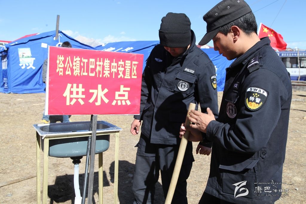 走進(jìn)江巴牧民新村安置點我們看見幾位管道工人和特警正在忙碌著挖埋管道,管道的旁邊豎起了一個紅色的牌子,上面寫著塔公鎮(zhèn)江巴村集中安置區(qū)供水點,據(jù)挖埋管道的人員介紹,按照康定縣水務(wù)局的要求,安置區(qū)供水點經(jīng)過兩天的時間總共建成了兩處,康定縣水務(wù)局在災(zāi)區(qū)明確方式,分類援助,主要從水源、管道、集中供水點和水質(zhì)保障四個環(huán)節(jié)解決供水問題。保證了大批災(zāi)區(qū)群眾和救援人員的生活用水,有效預(yù)防了疫情的發(fā)生。